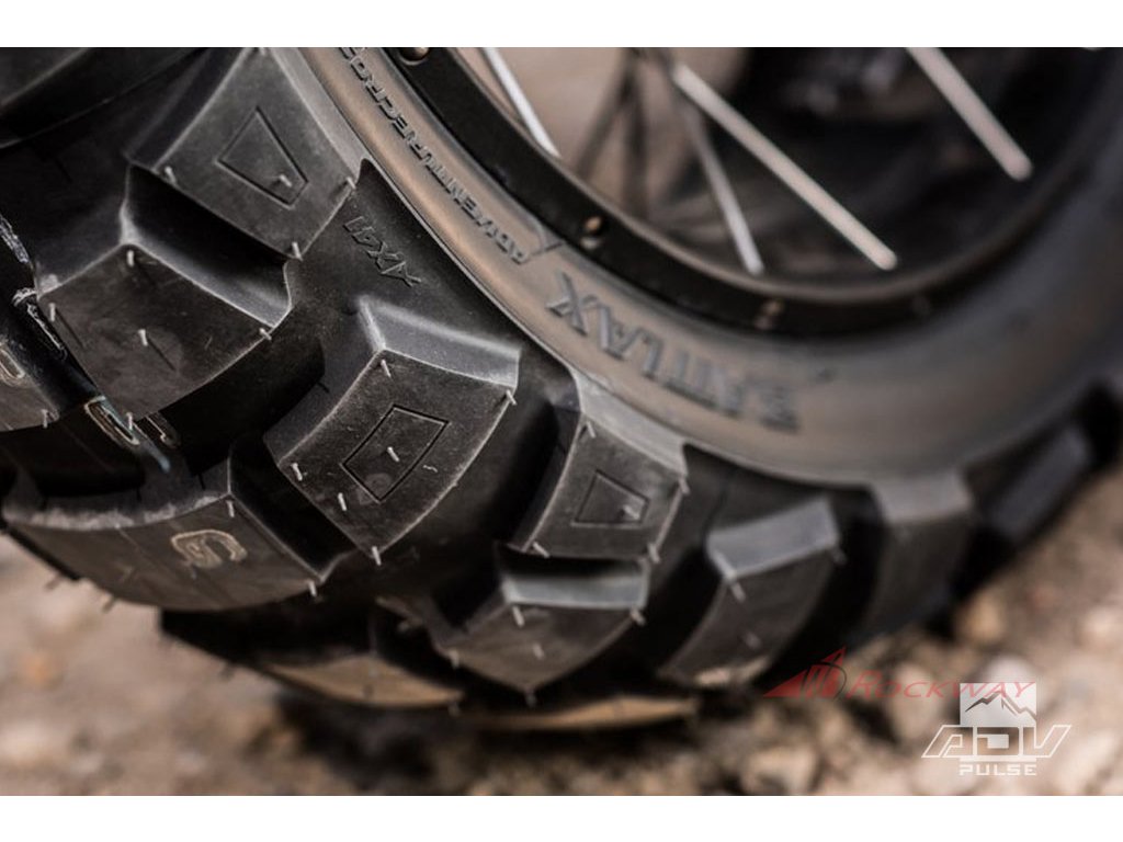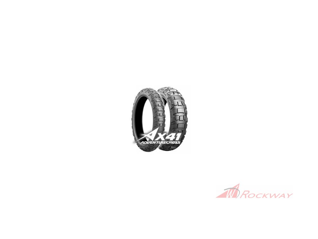 Battlax Adventurecross AX41 je novou Bridgestone Trail Off-Road pneumatikou. Umožní vám jízdu a prožitek na každé cestě i když pojedete do neznáma! Jak vyplývá ze samotného názvu, Battlax Adventurecross AX41 je směsicí know-how Bridgestone v silničních technologiích Battlax a uměním vývoje rozmístění bloků v Off-roadovém světě pneumatik Battlecross. Dezén AX41 má důmyslně rozložené bloky pro zajištění on- a off-road výkonů, odolnosti a stability.Představením opravdové trail-Off-Road pneumatiky v jejím line-upu zkompletoval Bridgestone produktovou nabídku. Bridgestone Battlax Adventurecross AX41 nastavuje novou úroveň standardu pro Trail – Off road výkony. Výrobci se podařilo nabídnout Trail pneumatiku se skutečnými off-road schopnostmi v souladu s požadavky řidičů motocklů adventure a umožnit řidičům objevit na svém motocyklu nové oblasti bez obavy ze ztráty jeho schopností. Cílem vývoje této pneu bylo zlepšit Off-road trakci a zvýšit Off-road přilnavost, zároveň při zachování odolnosti a eliminaci nerovnoměrného opotřebení a zachování jízdních vlastnosti na silnici. Těchto cílů bylo dosaženo novou konstrukcí dezénu a novým rozmístěním bloků pro vyjimečný výkon, konstrukcí bloků zajišťující jejich pevnost, optimalizací celkových rozměrů pneumatiky a použitím vysoce odolné směsi. U přední pneu optimalizovaným úhlem stěn bloků bylo dosaženo zvýšení pevnosti bloků a tím i zvýšení zpětné vazby řízení. Byla použita A-IW technologie snižující pilovité opotřebení a opotřebení náběhové hrany bloků díky deformaci bloku během brzdění a rozložení brzdných sil. Tento nový design počítá s deformací a zajišťuje odolnost pneumatiky. U zadní pneu došlo změnou rozměrů bloků ke zvýšení celkového počtu bloků. Použití široké a kratší sekce. Širší příčná sekce o 30% oproti A41. Kratší podélná sekce pro zvýšení počtu záběrových bloků na obvodu pneumatiky. Zvýšená pevnost a odolnost směsi Trail – on roadBattlax Adventure A41 pro vyvážení odolnosti a off-road výkonu.