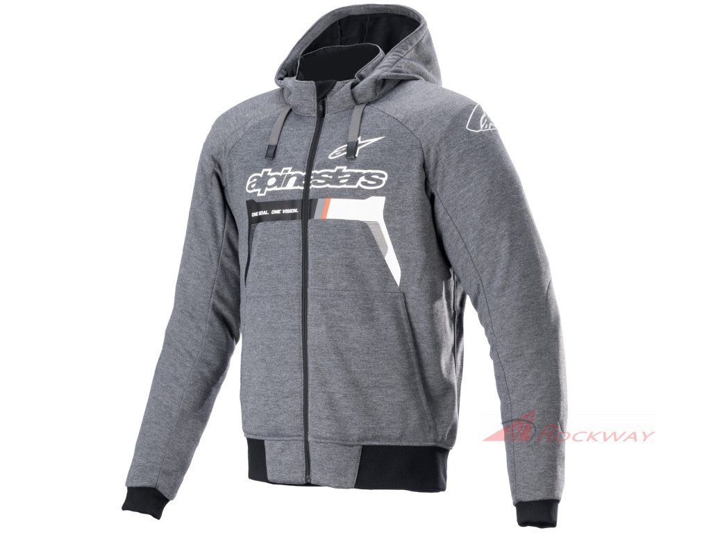 Lehká textilní bunda se vzhledem "mikiny" je vybavena podšívkou z aramidové tkaniny v oblasti kloubů a odnímatelnými protektory loktů a ramen BIO LIGHT. Kapuce bundy je odnímatelná. Bunda je plně CE certifikovaná. Verze se sportovním designem odkazující na DNA značky ALPINESTARS.