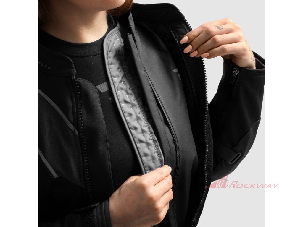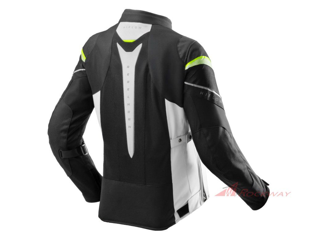 Bunda Rebelhorn Hiflow V má chrániče Armanox na loktech, ramenou a zádech a splňuje požadavky CE úrovně AA. Chrániče loktů jsou nastavitelné pro perfektní padnutí.