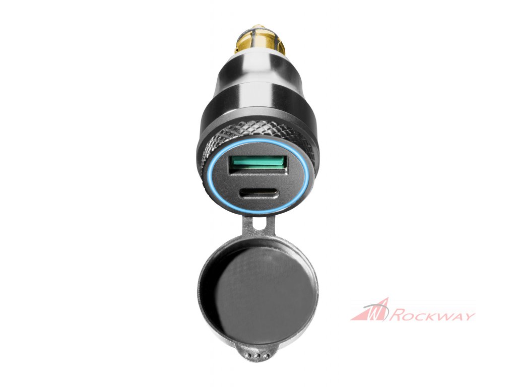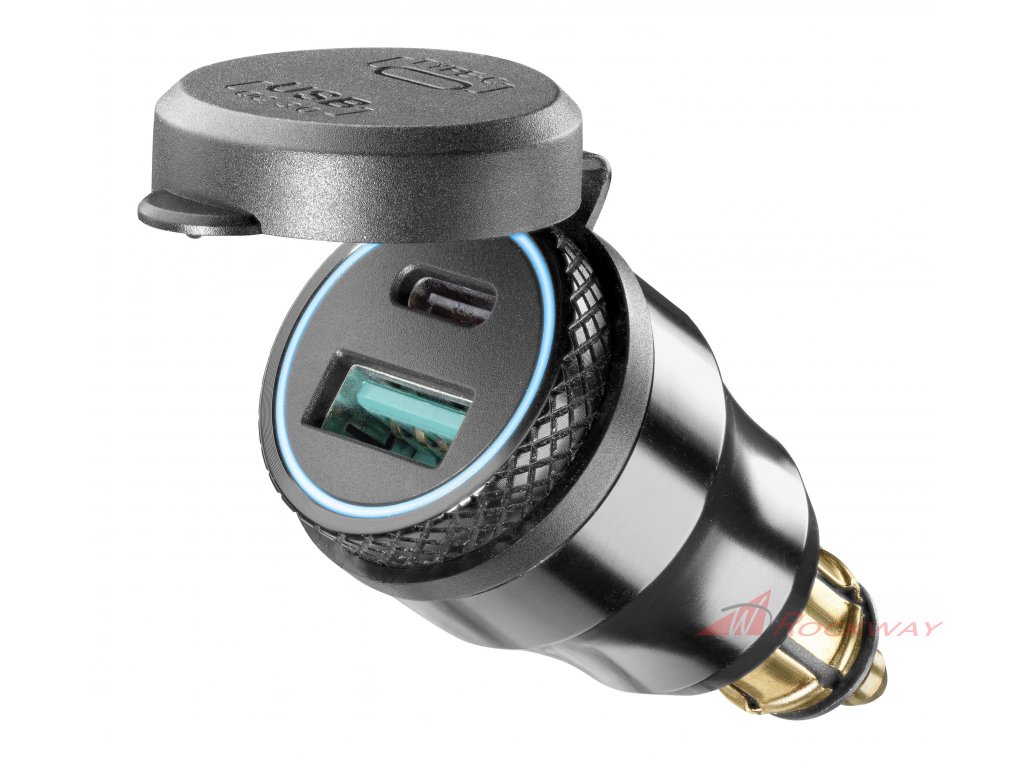 DIN adaptér Interphone s 1 x USB a 1 x USB-C výstupem pro motocykly, černý