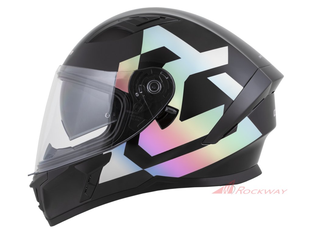 - Rychloodepínací mechanismus plexi s více polohami nastavení pozice a jazýčkem pro docvaknutí plexi v zavřené pozici.