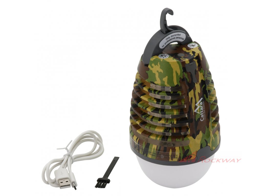 Lampička s elektronickým lapačem hmyzu, který využívá světlo s ultra fialovými paprsky pro efektivní nalákání létavého hmyzu (např. mouchy, můry, moly, komáry a další). Hmyz je po kontaktu s kovovou sítí pod vysokým napětím zahuben elektrickým proudem. Přístroj k hubení nevyužívá žádných chemických látek, pracuje bez zápachu a bez znečištění.