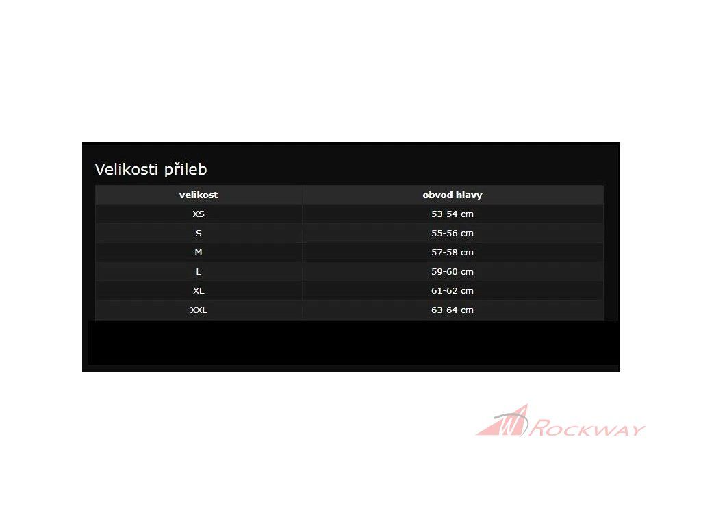 | Obvod hlavy v cm | 53-54 | 55-56 | 57-58 | 59-60 | 61-62 | 63-64 |